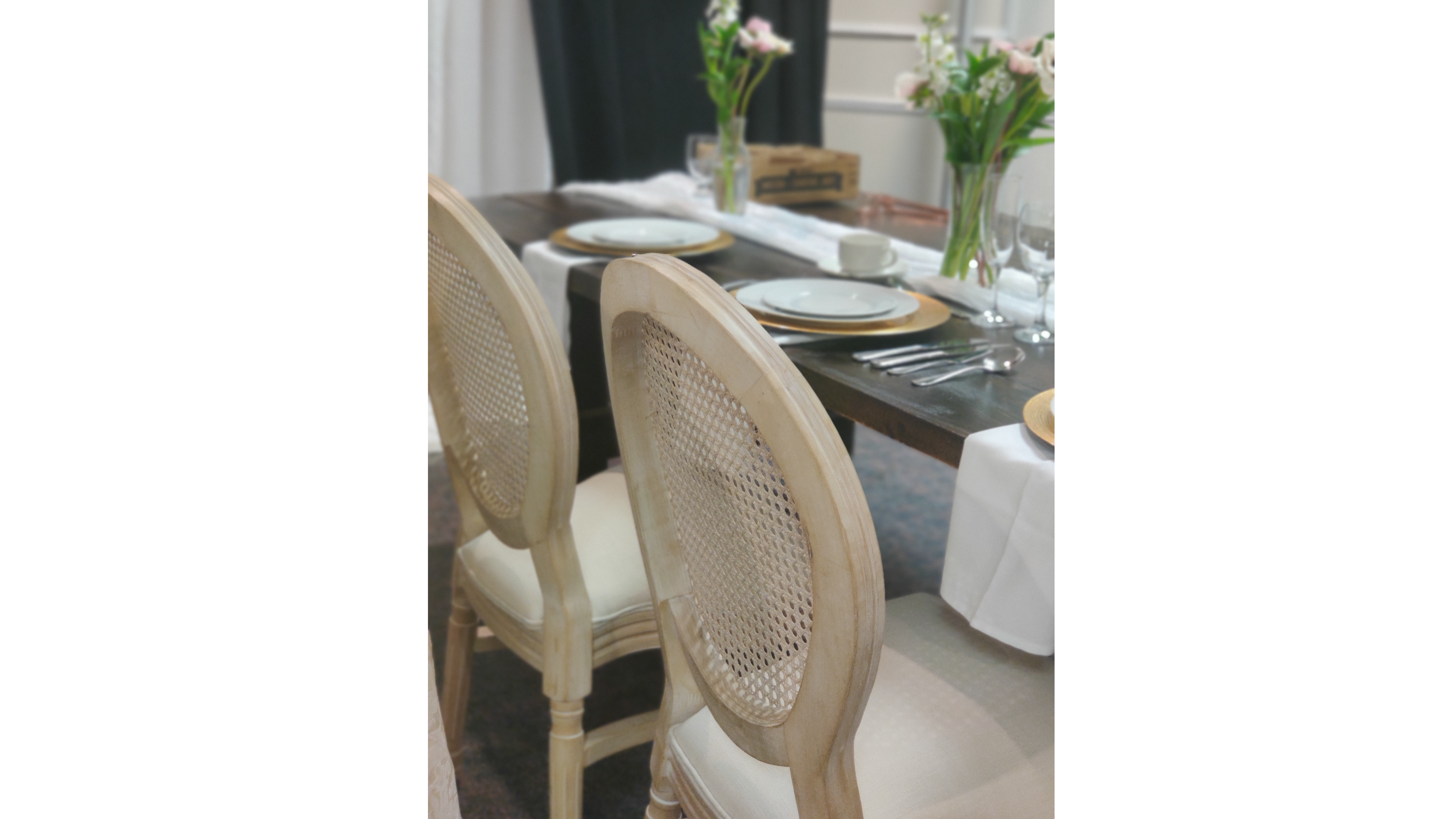 A beautiful chair to elevate your head table, sweetheart or signing table adding elegance and sophistication. Featuring a natural linen seat and vintage wood finish.